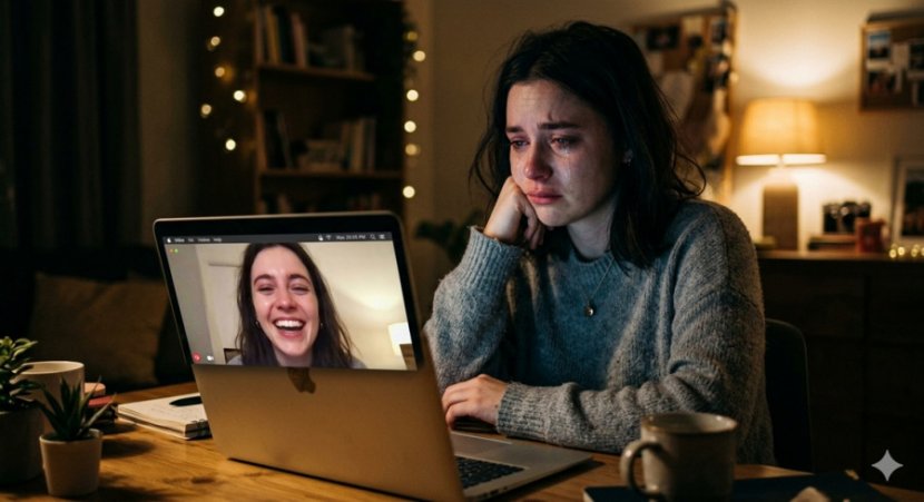 Sinto que estamos todos numa sala de espera, fingindo que a festa já começou. Mas a festa é um deserto. É uma fome que não se mata com imagens de banquetes. Eu olho para aquela foto de uma mulher rindo diante do mar e não vejo o mar, vejo apenas o esforço hercúleo de não ser triste. Que cansaço deve ser, meu Deus, sustentar essa arquitetura de alegria sem ter onde encostar a alma.